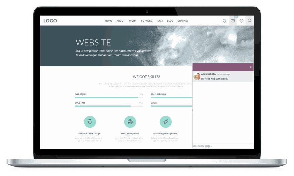 Asimismo, mejorará el nivel de sus servicios asegurándose de mantener satisfechos a sus clientes respondiendo cada una de sus consultas. Lo mejor de esta herramienta es la accesibilidad que posee en toda la plataforma y que gracias a ella, podrá chatear con sus compradores desde cualquier módulo de Odoo. Por lo tanto, usted tendrá la oportunidad de ejecutar múltiples tareas a la hora de buscar información, mientras la ventana de conversación se encuentra abierta para poder otorgar respuestas concretas y precisas.